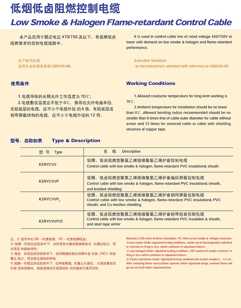 低煙低鹵阻燃控制電纜
