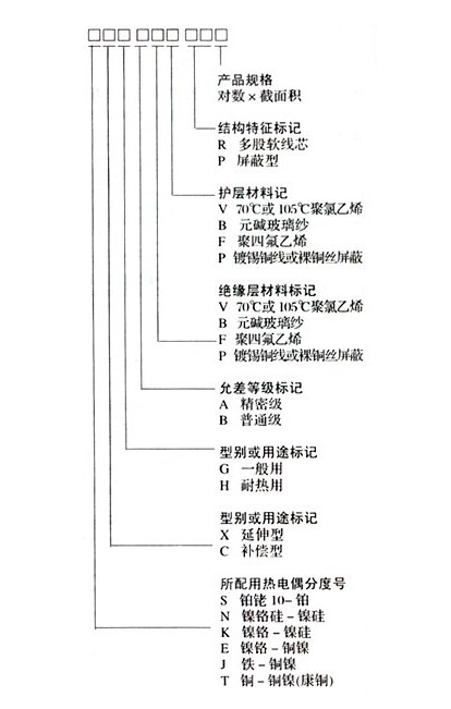 b)字母“X”表示延伸型補(bǔ)償導(dǎo)線(型別);